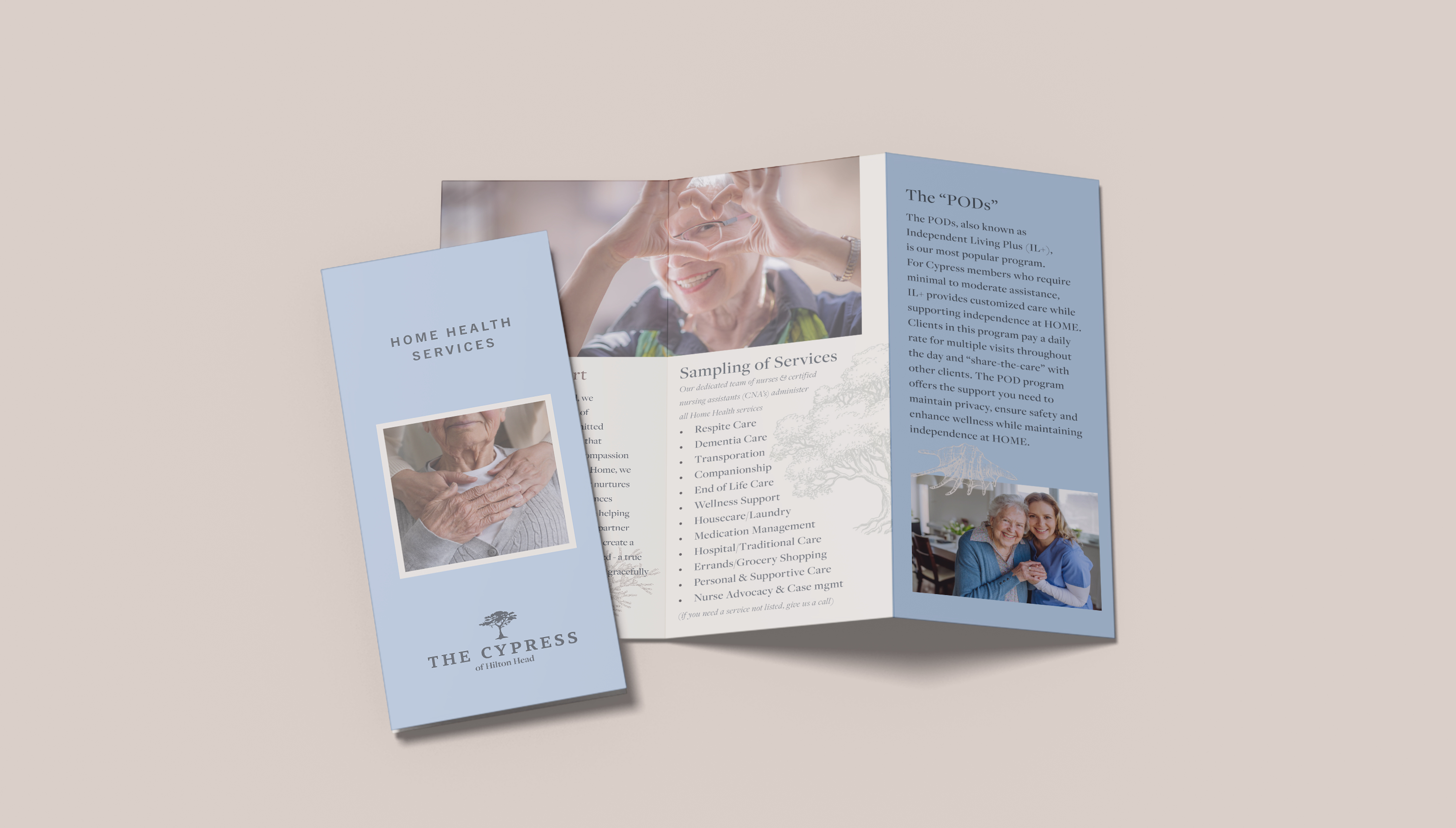 The Cypress of Hilton Head is a premier retirement community offering luxury living & personalized care in the town of Hilton Head Island. Design support for The Cypress spans multiple departments, creating a consistent & welcoming brand experience across both healthcare & lifestyle communications. I provided freelance, contract design direction & brand support to ensure that every visual element reflected The Cypress’s refined yet approachable existing brand identity, which balances professionalism with warmth across all materials.