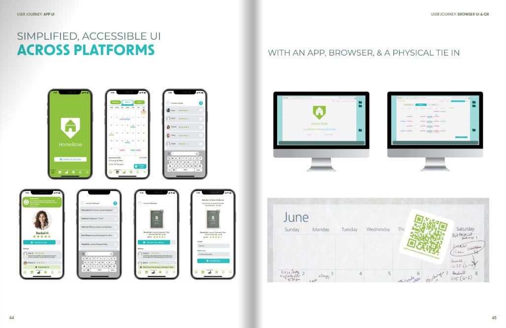 Homebase is a free household calendar app that automatically schedules recurring tasks, syncs with multiple calendars, & allows users to hire & rate professional help. It simplifies household management, making it easy for families or housemates to coordinate their chores and responsibilities. The goal was to create an intuitive, motivating platform that encourages collaboration while reducing friction in daily routines. This project was developed as a SCAD group collaboration with Kiersten Hebron, Kyra Mellinger, & Jack Clarke.