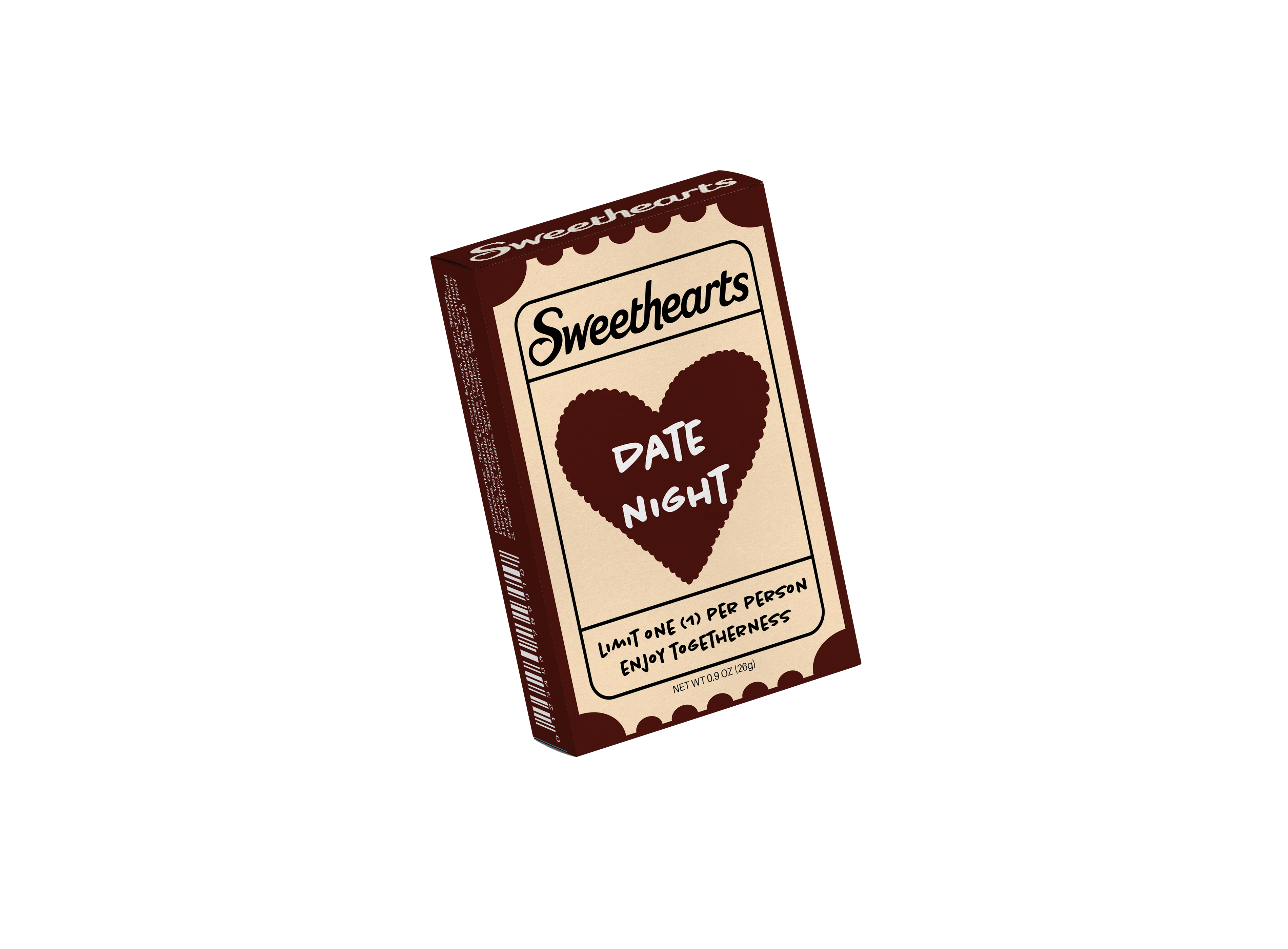 Sweethearts candy is traditionally associated with Valentine’s Day, with 90% of sales occurring during that week. The goal of this project was to rebrand & reposition Sweethearts to appeal to a broader audience, extending its relevance beyond a single holiday. This project targeted both 20–30-year-old couples as well as older consumers familiar with the brand. It was a SCAD group project by Jack Clarke, Anabella Hwang, & Caroline Cassidy.
